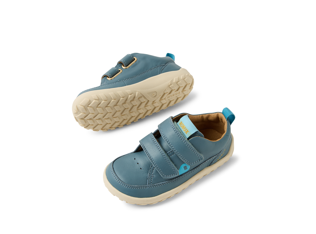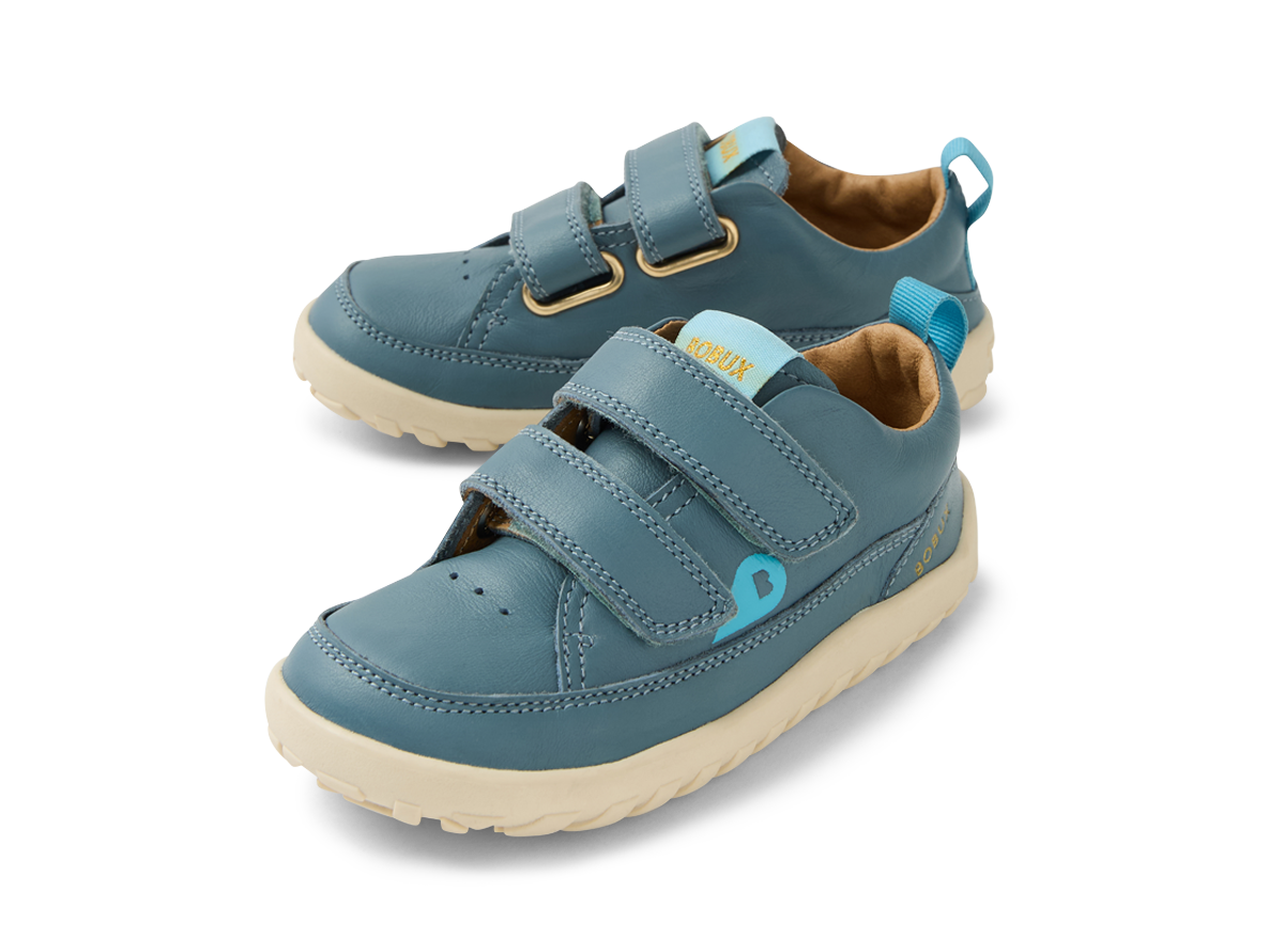 Bobux IW Dawn Stormy Weather baskāju kurpes. Jaunzēlandes ražotājs Bobux, domājot par pēdu dabisku attīstību, radījis šīs baskāju apavu principiem atbilstošās, kvalitatīvās un praktiskās kurpes bērniem, kas jau ir aktīvi staigātāji. Tām ir ļoti elastīga un viegla, bet nodilumizturīga, vidēja platuma zolīte. Pateicoties aizdarei ar divām līplentēm apavi ir pielāgojamas jebkura platuma pēdai. Kurpes izgatavotas no mīkstas ādas, arī to oderējums.