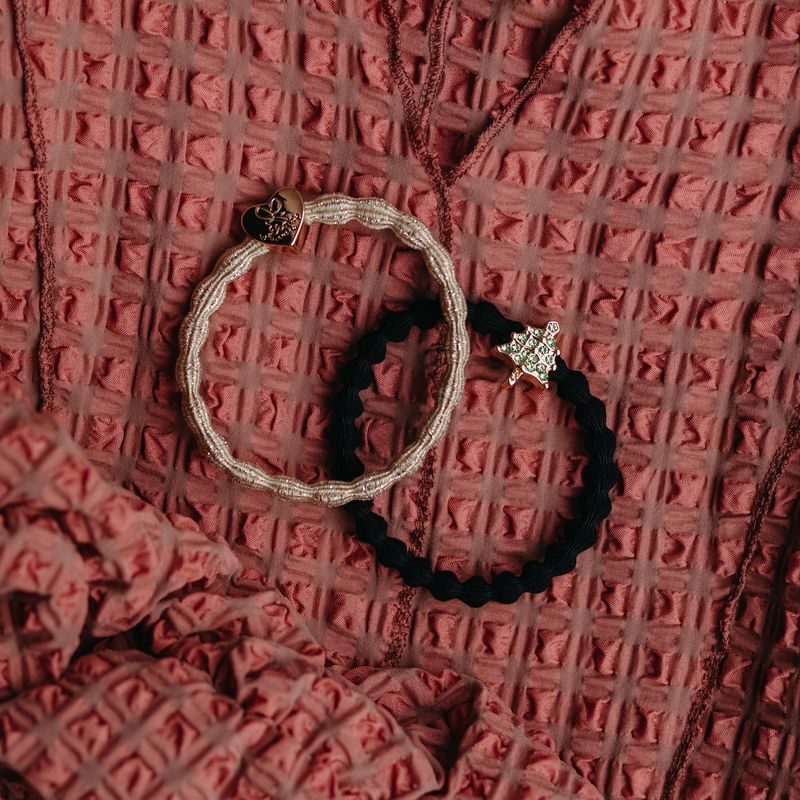 byEloise Gold Christmas Tree un byEloise Gold Heart Metallic Gold matu gumijas - stilīgs aksesuārs, elegants un izturīgs.