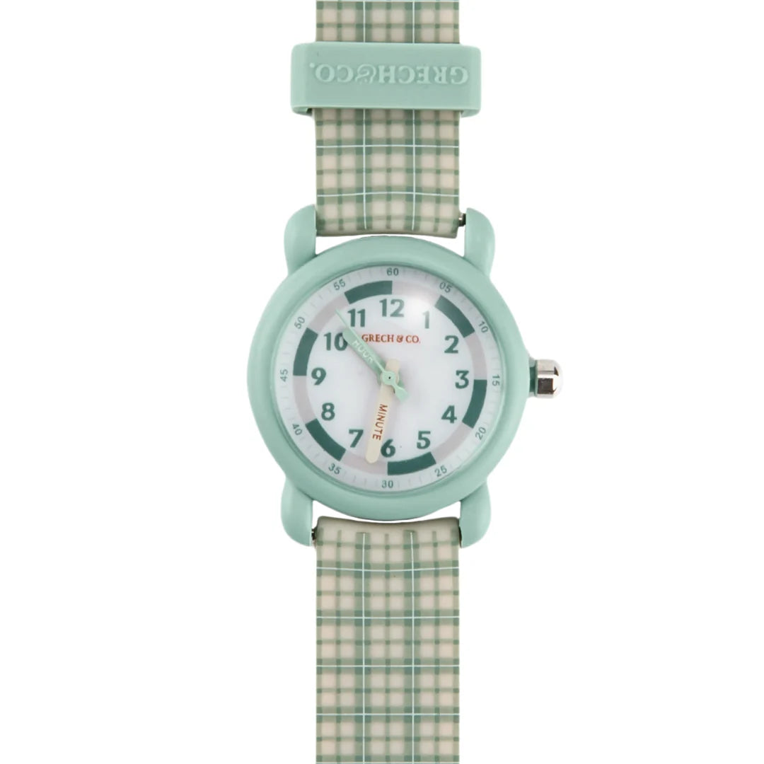 Dāņu ražotāja Grech & Co. klasiska dizaina pulkstenis ar ciparnīcu un sekunžu rādītāju, kas mazajiem palīdzēs apgūt laikrāža atpazīšanu. Pulkstenis piemērots gan bērniem, gan pieaugušajiem. Nerūsējošā tērauda korpuss, triecienizturīga priekšpuse, silikona (bez Bisfenola A) siksniņa, mitrumizturīgs.