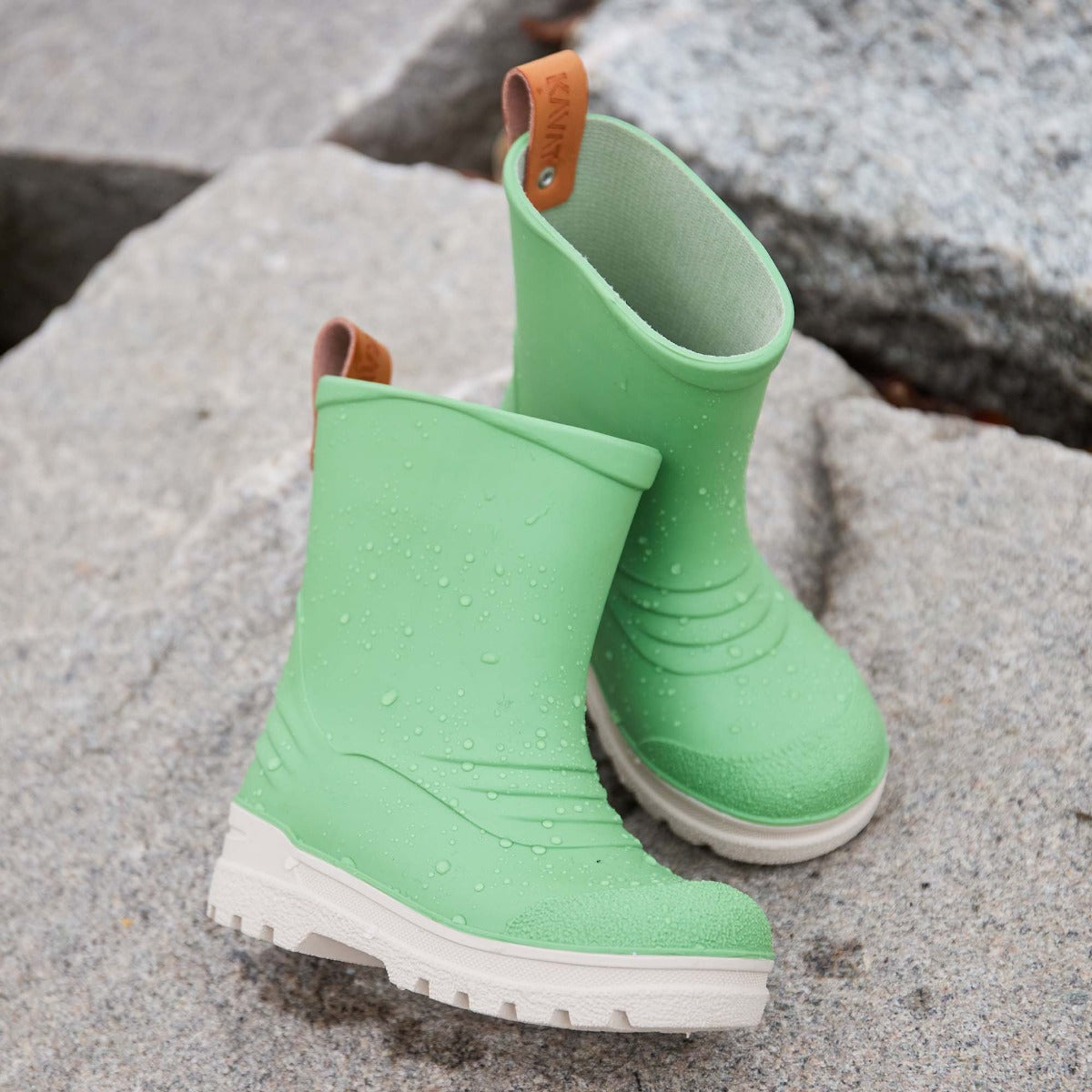 Uzticami pavadoņi slapjās dienās! Ieraugot šos zābakus, tie atstāj masīvu iespaidu, bet tā pavisam nav taisnība, un labākais pierādījums tam ir tas, cik mazie jūtas forši un viegli, kad zābaki ir apauti. Zviedru KAVAT Grytgöl Grass gumijas zābaki izgatavoti no otrreiz pārstrādātas un kaitīgas ķīmiskas vielas nesaturošas BIOplastikas, oderēti ar kokvilnas audumu. Tie ir marķēti ar EU Ecolabel nozīmīti. Izņemama presētas vilnas iekšzole, kas pēdām nodrošinās labāku mikroklimatu. Ja nu zābaki pavisam nošmulējušies, tos droši var likt veļasmašīnā un izmazgāt 30 grādu temperatūrā.